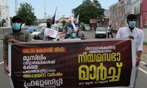 പാലോളി കമ്മീഷന് ശുപാര്ശ വഴി നടപ്പിലാക്കിയ മുസ്ലിം ക്ഷേമ പദ്ധതികള് ജനസംഖ്യാ തോതിലാണ് നടപ്പിലാക്കേണ്ടത് എന്ന കോടതി വിധിയില് മുഖ്യമന്ത്രി തുടരുന്ന മൗനം വെടിയണം. നിലവിലെ വിധിപ്രകാരം പുതിയ അധ്യായന വര്ഷത്തില് മുസ്ലിം വിദ്യാര്ത്ഥികള്ക്ക് പല ക്ഷേമ പദ്ധതികളും നഷ്ടപ്പെട്ടിട്ടുണ്ട്. ഇത് മുസ്ലിം വിദ്യാര്ഥികളുടെ ഉപരിപഠനത്തെ ബാധിക്കും. പിന്നാക്ക വിഭാഗങ്ങളുടെ ഇത്തരം അവകാശങ്ങള് സംരക്ഷിക്കാന് സര്ക്കാര് നിയമ നിര്മാണം നടത്തണമെന്നും ഫ്രറ്റേണിറ്റി മൂവ്മെന്റ് നിയമസഭാ മാര്ച്ചില് അവശ്യപ്പെട്ടു.