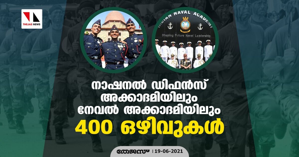 നാഷനല് ഡിഫന്സ് അക്കാദമിയിലും നേവല് അക്കാദമിയിലും 400 ഒഴിവുകള്
