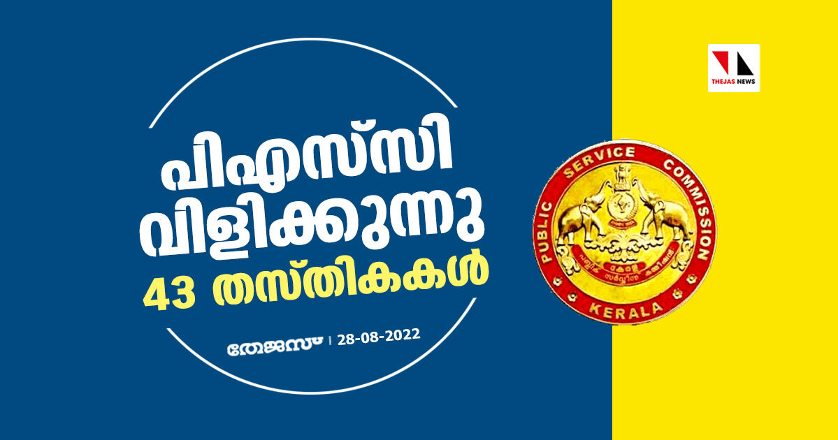 കേരള പബ്ലിക് സര്വീസ് കമ്മീഷന് 43 തസ്തികകളിലെ ഒഴിവുകളിലേക്ക് അപേക്ഷ ക്ഷണിച്ചു.