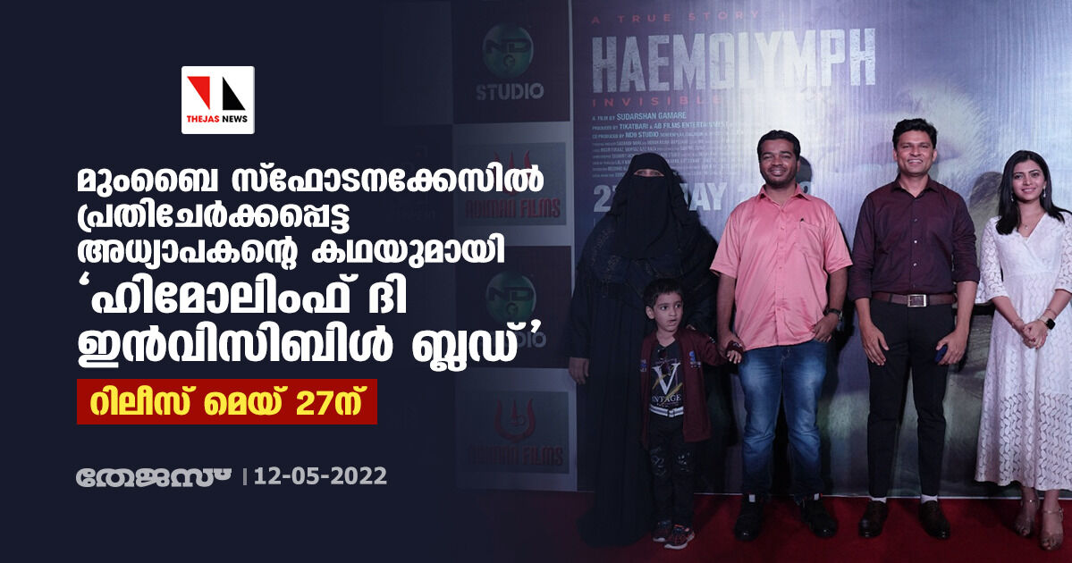 മുംബൈ സ്ഫോടനകേസില് പ്രതിചേര്ക്കപ്പെട്ട അധ്യാപകന്റെ കഥയുമായി 'ഹിമോലിംഫ് ദി ഇന്വിസിബിള് ബ്ലഡ്'; മെയ് 27ന് റിലീസ്