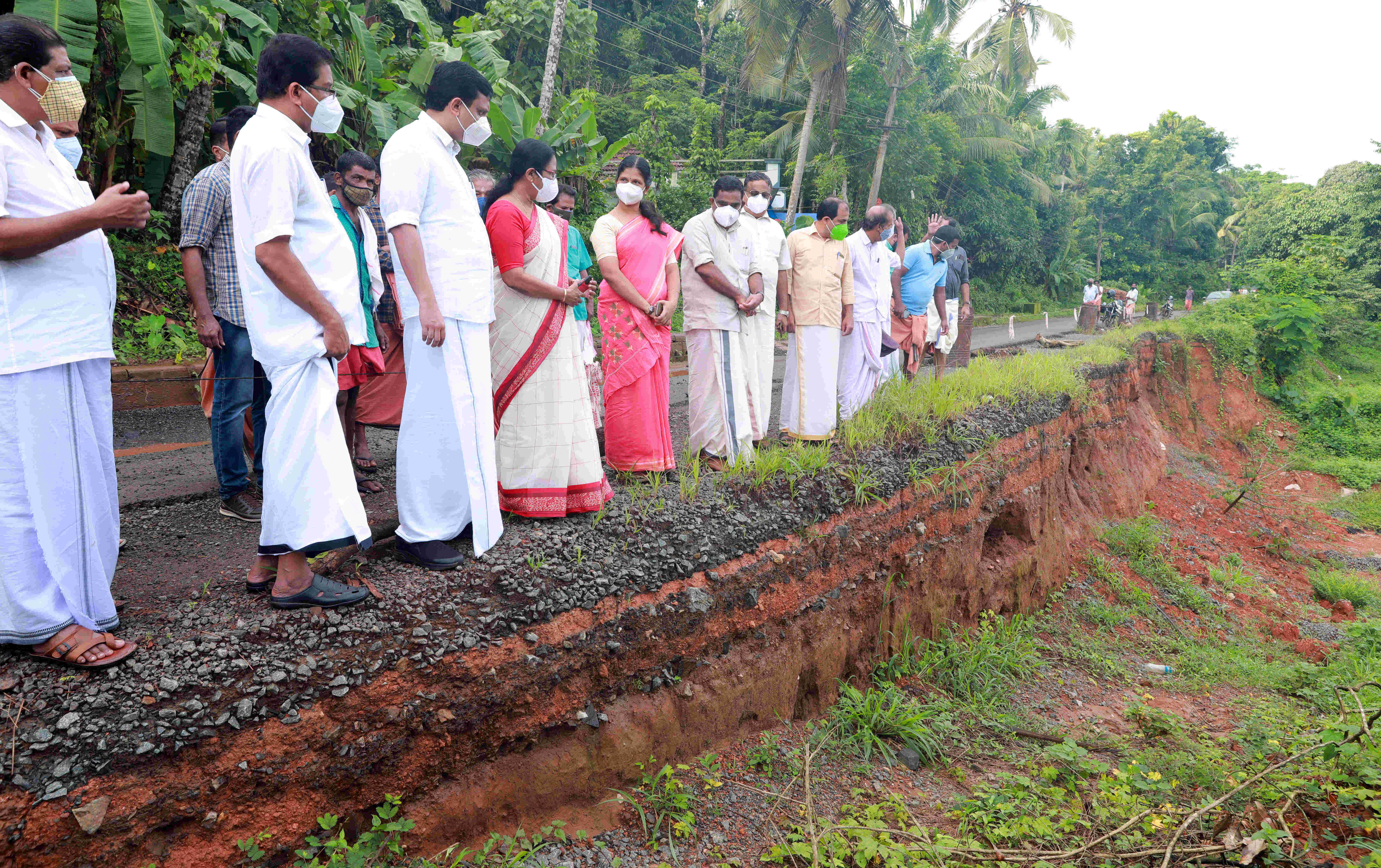 മട്ടന്നൂര്-മണ്ണൂര് റോഡില് നായിക്കാലിയില് പുഴയിലേക്ക് റോഡിന്റെ ഒരു ഭാഗം ഇടിഞ്ഞ് താഴ്ന്ന സ്ഥലവും മന്ത്രി സന്ദര്ശിച്ചു. മട്ടന്നൂര് മണ്ണൂര് മരുതായി റോഡിന്റെ നവീകരണ പ്രവൃത്തിക്കിടെയാണ് 2019ലെ കാലവര്ഷത്തില് റോഡിന്റെ ഒരു ഭാഗം ഇടിഞ്ഞ് പുഴയിലേക്ക് താഴ്ന്നത്. നായിക്കാലി പാലത്തിന് സമീപം നിര്മിച്ച കോണ്ക്രീറ്റ് ഭിത്തിയും തകര്ന്നിരുന്നു. ഈ റോഡുമായി ബന്ധപ്പെട്ട ഒരു സ്റ്റാറ്റസ് റിപോര്ട്ട് സമര്പ്പിക്കാന് മന്ത്രി ഉദ്യോഗസ്ഥര്ക്ക് നിര്ദേശം നല്കി. കിഫ്ബിയുമായി ചേര്ന്ന് തുടര് നടപടികള് ആലോചിക്കാന് തിരുവനന്തപുരത്ത് യോഗം വിളിച്ചുചേര്ക്കുമെന്നും അദ്ദേഹം അറിയിച്ചു.