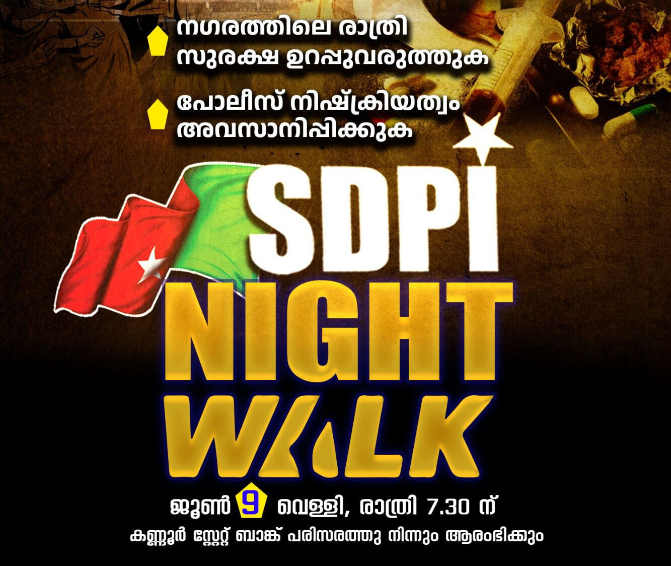 നഗരത്തിലെ രാത്രികാല സുരക്ഷ ഉറപ്പുവരുത്തുക; കണ്ണൂരില് നാളെ എസ് ഡിപിഐ നൈറ്റ് വാക്ക്