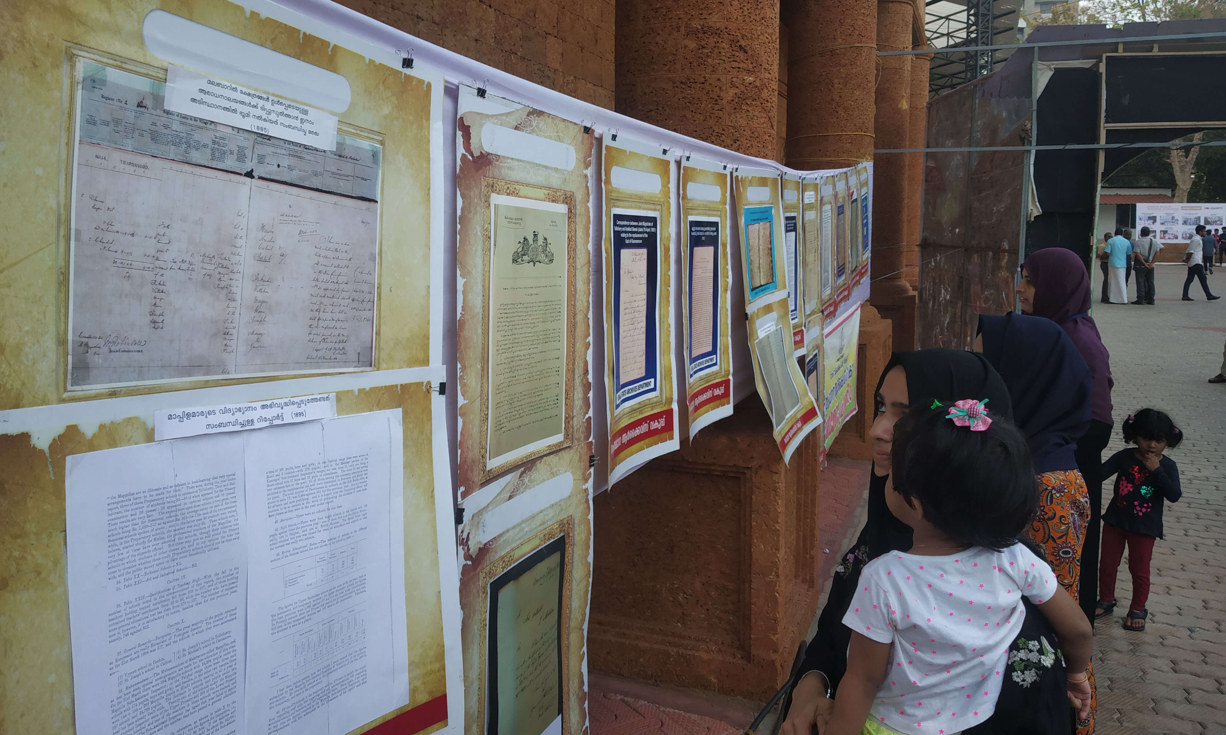 കണ്ണൂര് അറക്കല് രാജവംശത്തിന്റെ ഉല്ഭവം, അറക്കലിന്റെ ഉടമസ്ഥതയിലുള്ള ഹൈദ്രോസ് എന്ന കപ്പലിന്റെ കാര്യക്ഷമത സര്ട്ടിഫിക്കറ്റ്, 1786 ല് വളപട്ടണത്ത് നിര്മിച്ച സമദാനി എന്ന കപ്പലിന്റെ ഉടമസ്ഥാവകാശ രേഖ, മാപ്പിള ലഹളയെ കുറിച്ച് ചീഫ് സെക്രട്ടറിക്ക് അയച്ച കത്ത്, 1898ല് നബിദിനത്തിന് പൊതുഅവധി നല്കുമെന്ന പ്രഖ്യാപനം, അസുഖം ബാധിച്ച ഉമ്മയെ കാണാന് വെല്ലൂര് ജയിലില് നിന്ന് മുഹമ്മദ് അബ്ദുറഹ്്മാന് സാഹിബിന് 1941ല് ജാമ്യം അനുവദിച്ച രേഖ തുടങ്ങിയവ പ്രദര്ശനത്തെ സമ്പന്നമാക്കുന്നു. കോഴിക്കോട് റീജ്യനല് സെന്ററിലെ ഷലിന് കുമാര്, അജിത് കുമാര് എന്നിവരാണ് പുരാരേഖ പ്രദര്ശനത്തിന് നേതൃത്വം നല്കുന്നത്. കൂടാതെ നൂറ്റാണ്ടുകള് പഴക്കമുള്ള ആമാടപ്പെട്ടി തുപ്പല്കോളാമ്പി ചീനഭരണി കാര്ഷിക ഉപകരണങ്ങളും പ്രദര്ശനത്തിനുണ്ട്. മാട്ടൂല് സ്വദേശി ശേഖരത്തിലുള്ളതാണ് ഇവ. അറക്കല് രാജവംശത്തിലെ കത്തിടപാടുകളും നാണയങ്ങളും അപൂര്വ്വ ഗ്രന്ഥങ്ങളും ഗ്രന്ഥങ്ങളും കത്തിടപാടുകളും നാണയങ്ങളും അപൂര്വ ഗ്രന്ഥങ്ങളും ഗ്രന്ഥങ്ങളും പ്രദര്ശനത്തിലുണ്ട്.