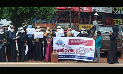 കാസര്കോട്: വര്ധിച്ചുവരുന്ന ഇന്ധന വിലവര്ധനയില് പ്രതിഷേധിച്ച് കേന്ദ- സംസ്ഥാന സര്ക്കാരുകളുടെ നികുതിക്കൊള്ള അവസാനിപ്പിക്കുക, ഇന്ധന വിലവര്ധനയുടെ അധികാരം കേന്ദ്രസര്ക്കാര് ഏറ്റെടുക്കുക എന്നീ ആവശ്യങ്ങളുന്നയിച്ച് വിമന് ഇന്ത്യ മൂവ്മെന്റ് കാസര്കോട് മണ്ഡലം കമ്മിറ്റി പ്രതിഷേധം സംഘടിപ്പിച്ചു. പാത്രം തലയില് വച്ചും കൊട്ടിയും വായ മൂടിക്കെട്ടിയും വ്യത്യസ്തമായ രീതിയിലാണ് സ്ത്രീകള് പ്രതിഷേധിച്ചത്.