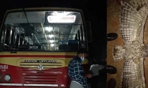 ഓടിക്കൊണ്ടിരുന്ന കെഎസ്ആര്ടിസി ബസ്സില് വെള്ളിമൂങ്ങ ഇടിച്ചു; ചില്ല് പൊട്ടി, മൂങ്ങ ചത്തു