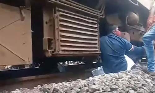 പിന്നാലെ ബോഗിക്കടിയില് കയറിക്കിടന്നു. ഉടന്തന്നെ സമീപമുണ്ടായിരുന്ന നാട്ടുകാര് യുവാവിനെ പുറത്തെത്തിക്കാന് ശ്രമിച്ചെങ്കിലും ഫലംകണ്ടില്ല. ഫയര്ഫോഴ്സ് ഉദ്യോഗസ്ഥരെത്തിയ ശേഷമാണ് ഏറെ പണിപ്പെട്ട് ഇയാളെ ട്രെയിനിന്റെ അടിയില്നിന്ന് ഇയാളെ പുറത്തേക്കെത്തിക്കാനായത്. അരമണിക്കൂറോളം ഇയാള് ട്രെയിന് അടിയില് കിടന്നതായി ദൃക്സാക്ഷികള് പറയുന്നു. മാനസികാസ്വാസ്ഥ്യം കാണിച്ച യുവാവിനെ പോലിസും ഫയര്ഫോഴ്സും ചേര്ന്ന് കോട്ടയം മെഡിക്കല് കോളജിലേക്ക് മാറ്റി.