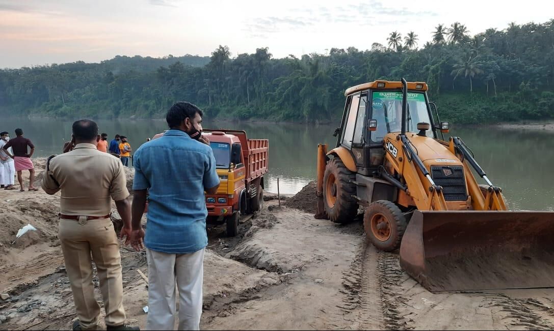അനധികൃതമായി കൂട്ടിയിട്ട 35 ലോഡ് മണല് പിടികൂടി