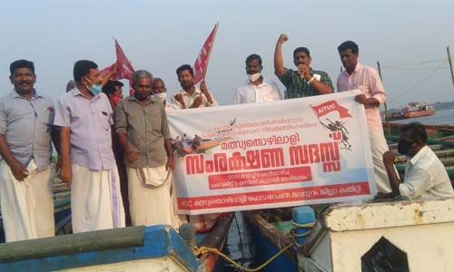 തിരൂര്: ഇന്ത്യയിലെ മല്സ്യമേഖലയെ ഒന്നാകെ കുത്തകകള്ക്ക് തീറെഴുതുന്ന കേന്ദ്രസര്ക്കാരിന്റെ മല്സ്യബന്ധന നിയമം പിന്വലിക്കണമെന്നാവശ്യപ്പെട്ട് പടിഞ്ഞാറേക്കര അഴിമുഖത്ത് മല്സ്യത്തൊഴിലാളി ഫെഡറേഷന് (എഐടിയുസി) മലപ്പുറം ജില്ലാ കമ്മിറ്റിയുടെ ആഭിമുഖ്യത്തില് സംരക്ഷണ സദസ് സംഘടിപ്പിച്ചു. മല്സ്യമേഖലയില് നടപ്പാക്കുന്ന ബ്ലൂ എക്കണോമിക്സ് നയരേഖക്കെതിരെയുളള മല്സ്യത്തൊഴിലാളികള് അഴിമുഖത്ത് തോണിയില് പ്രതിഷേധം സംഘടിപ്പിച്ചത്.