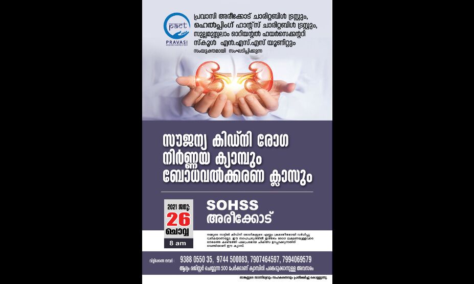 കിഡ്നി രോഗ നിര്ണയ ക്യാംപ് ജനുവരി 26ന്