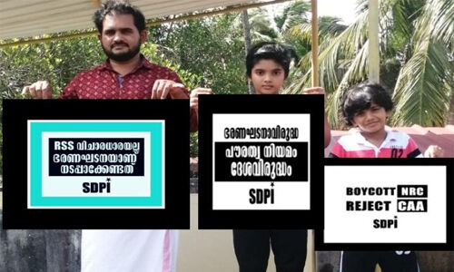 സിഎഎ നടപ്പിലാക്കാനുള്ള കേന്ദ്രസര്ക്കാര് നീക്കത്തിനെതിരേ വീടുകളില് എസ്ഡിപിഐ പ്രതിഷേധം