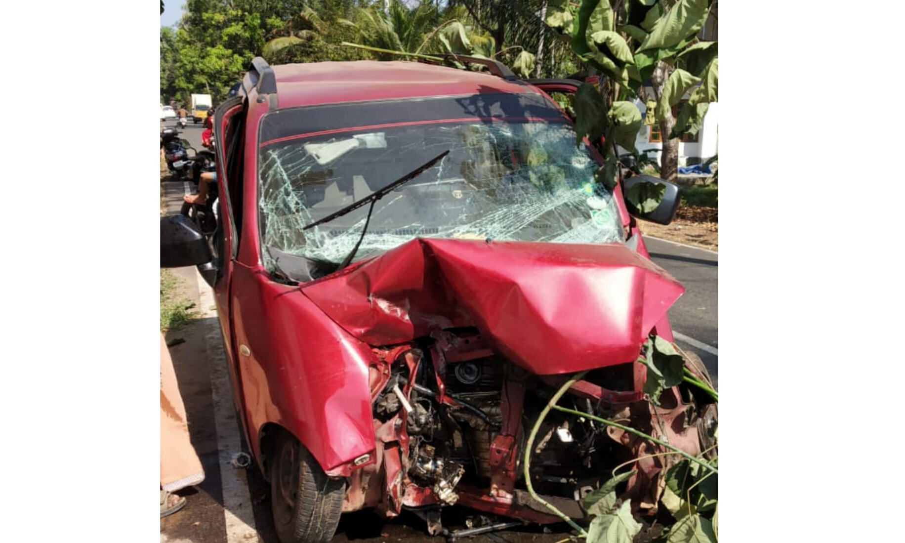 കാര് നിയന്ത്രണം വിട്ട് കോണ്ക്രീറ്റ് കുറ്റിയിലിടിച്ച് തകര്ന്നു