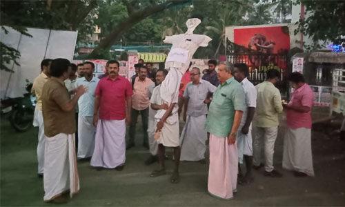 ഗുരുവായൂരില് കോണ്ഗ്രസ് കൗണ്സിലര്മാര് ടി എന് പ്രതാപന്റെ കോലം കത്തിച്ചു