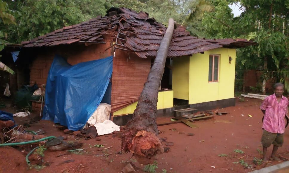 തെങ്ങ് കടപുഴകി വീട് തകര്ന്നു