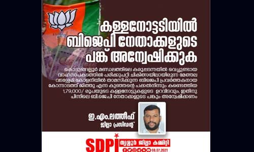 കള്ളനോട്ടടിയില് ബിജെപി നേതാക്കളുടെ പങ്ക് അന്വേഷിക്കുക: എസ്ഡിപിഐ