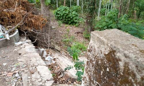 മൂന്നരവര്ഷത്തോളം മുമ്പുണ്ടായ ശക്തമായ മഴയില് തകര്ന്ന ഭാഗത്ത് നിന്നും കുറച്ചുനീങ്ങിയുള്ള ഭാഗത്ത് അടിത്തറ വെള്ളത്തോടൊപ്പം ഒലിച്ചുപോയതിനാല് ചുറ്റുമതില് ശൂന്യതയില് നില്ക്കുകയാണ്.