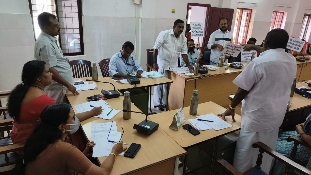 കോണ്ഗ്രസ് അംഗങ്ങളായ ജോഷി കാഞ്ഞൂത്തറ, ജിയോ ജോര്ജ് കൊടിയന്, അമ്പിളി സജീവ്, യദുകൃഷ്ണ, ലിസി സേവ്യര്, സി എല് ബാബു എന്നിവരാണ് പ്രതിഷേധിച്ച് യോഗം ബഹിഷ്കരിച്ചിറങ്ങി പോയത്.