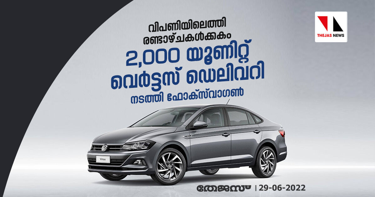 വിപണിയിലെത്തി രണ്ടാഴ്ചകള്ക്കകം 2,000 യൂണിറ്റ് വെര്ട്ടസ് ഡെലിവറി നടത്തി ഫോക്സ്വാഗണ്