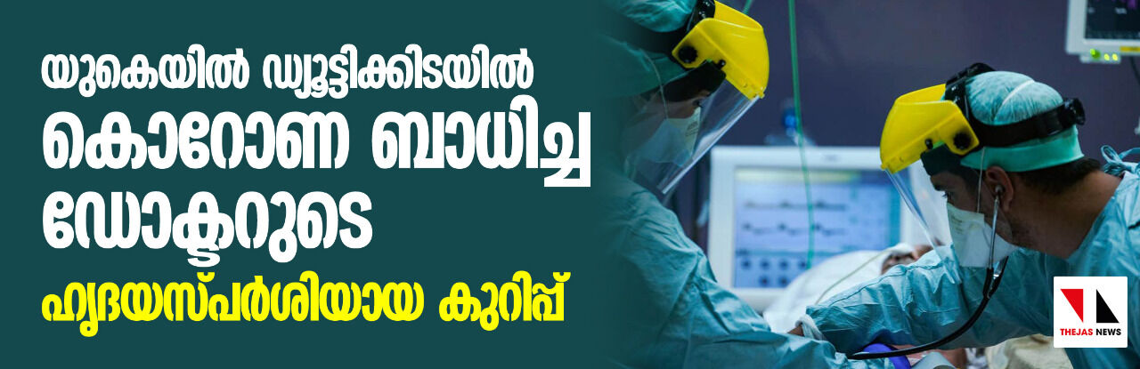 യുകെയില് ഡ്യൂട്ടിക്കിടയില് കൊറോണ ബാധിച്ച ഡോക്ടറുടെ ഹൃദയസ്പര്ശിയായ കുറിപ്പ്