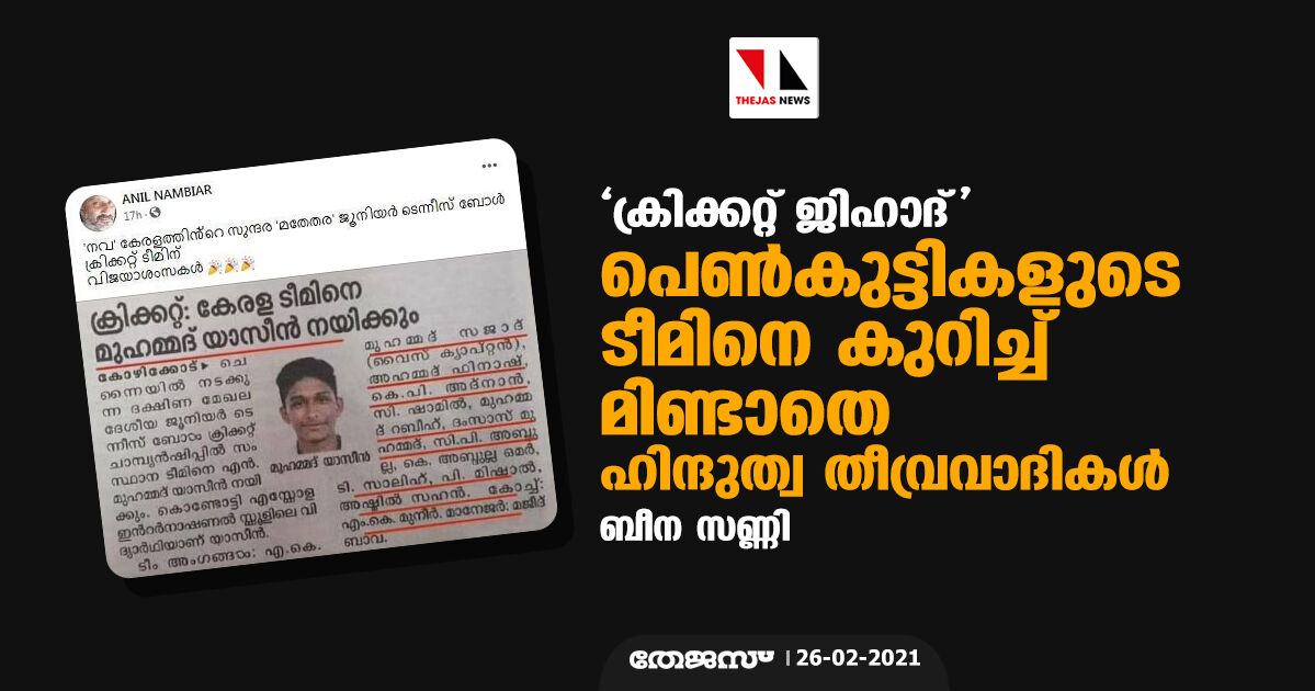 'ക്രിക്കറ്റ് ജിഹാദ്' പെണ്കുട്ടികളുടെ ടീമിനെ കുറിച്ച് മിണ്ടാതെ ഹിന്ദുത്വ തീവ്രവാദികള്'