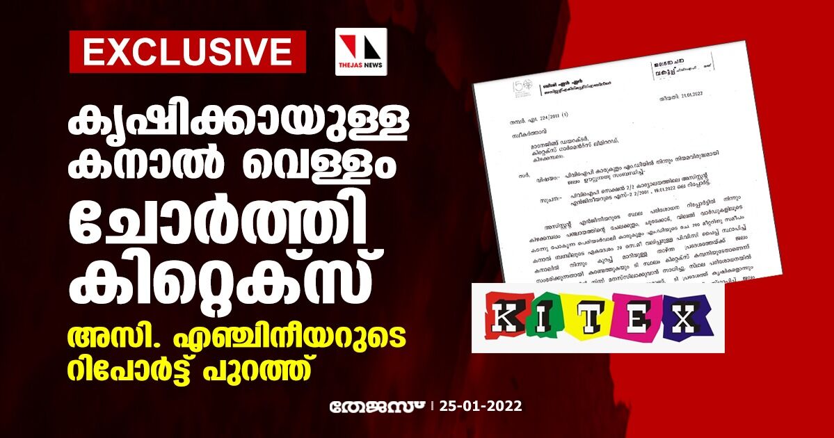 കൃഷിക്കായുള്ള കനാൽ വെള്ളം ചോർത്തി കിറ്റെക്സ്; അസി. എഞ്ചിനീയറുടെ റിപോർട്ട് പുറത്ത്