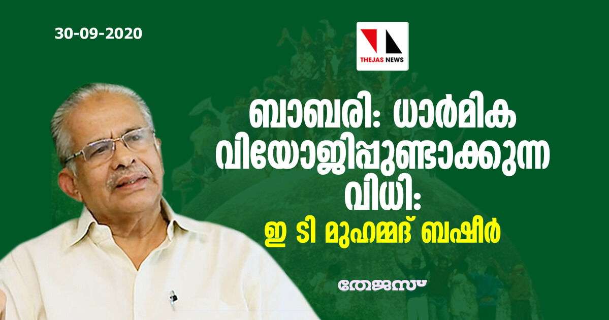 ബാബരി; ധാർമിക വിയോജിപ്പുണ്ടാക്കുന്ന വിധി: ഇ ടി മുഹമ്മദ് ബഷീർ