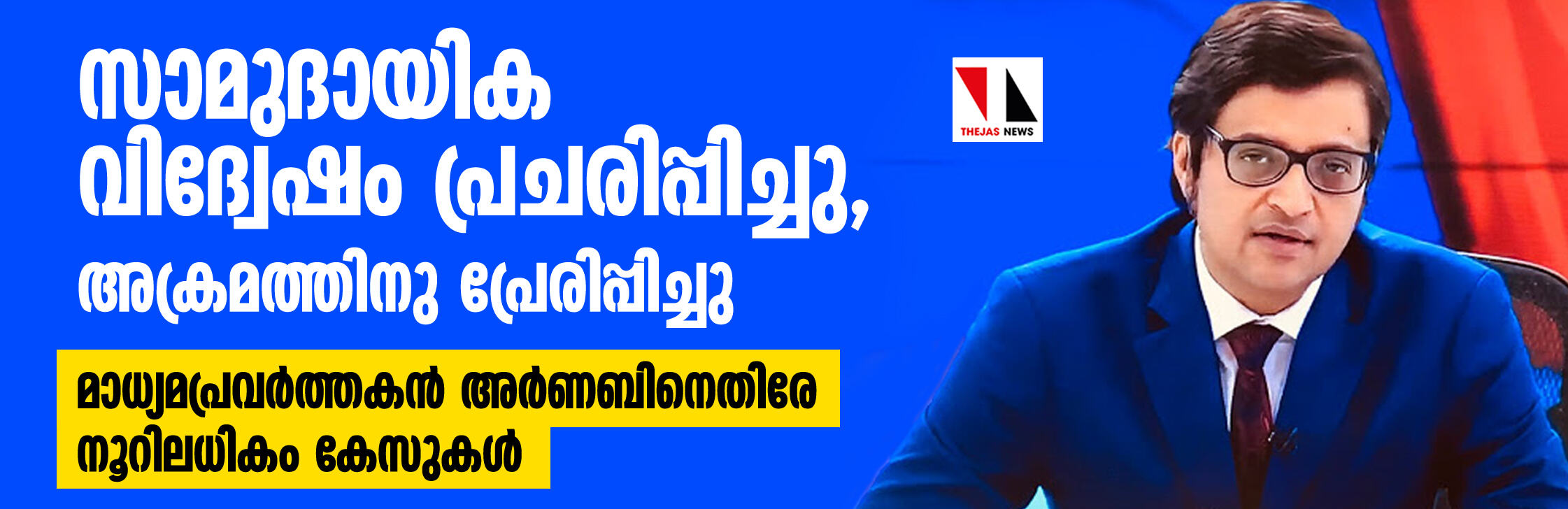 സാമുദായിക വിദ്വേഷം പ്രചരിപ്പിച്ചു, അക്രമത്തിനു പ്രേരിപ്പിച്ചു- മാധ്യമപ്രവര്ത്തകന് അര്ണബിനെതിരേ നൂറിലധികം കേസുകള്