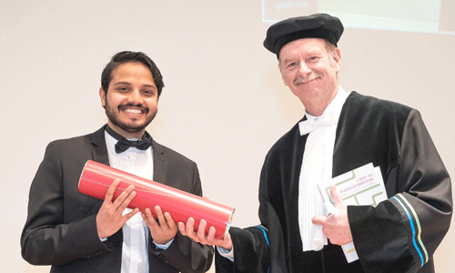 മലപ്പുറം: മലയാളി യുവാവിനു ജനിതക ശാസ്ത്രത്തില് വിദേശത്ത് അംഗീകാരം. പട്ടര്കടവ് സ്വദേശി മിഹ്രിസ് നടുത്തൊടിയാണ് നെതെര്ലാന്റിലെ വാഗണിങ്കന് യൂനിവേഴ്സിറ്റിയില്നിന്നും ജനിതക ശാസ്ത്ര ഗവേഷണത്തിന് ഡിസ്റ്റിംക്ഷനോടെ ഡോക്ടറേറ്റ് നേടിയത്. സൂക്ഷ്മ ആല്ഗകളില് ജനിതക പരിവര്ത്തനത്തിലൂടെ ജൈവ ഇന്ധനം സൃഷ്ടിക്കാനുള്ള സാങ്കേതികവിദ്യയില് നൂതന സാദ്ധ്യതകള് നിര്ദ്ദേശിക്കുന്ന ഗവേഷണത്തിനാണു പ്രശസ്ത ശാസ്ത്രജ്ഞരുടെ പ്രത്യേക പ്രശംസയോടെ ഡോക്ടറേറ്റ് നല്കിയത്. മിഹ്രിസ് ഇപ്പോള് ബ്രിട്ടനില് ഗവേഷണം തുടരുകയാണ്. യുഎഇയില് എന്ജിനീയറായ നടുത്തൊടി സലീമിന്റെയും അസ്മത് ജഹാന്റെയും മകനാണ്. ഷിജിഷ ഹാജറാ ഖാലിദ് ആണ് ഭാര്യ.