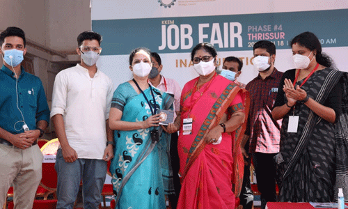 പി ബാലചന്ദ്രന് എംഎല്എ, ജില്ലാ പഞ്ചായത്ത് പ്രസിഡന്റ് പി കെ ഡേവിസ് മാസ്റ്റര് എന്നിവര് വിശിഷ്ടാതിഥികളായ പരിപാടിയില് കെകെഇഎം ജില്ലാ പ്രോഗ്രാം മാനേജര് ഡോ മധുസൂദനന് റിപ്പോര്ട്ട് അവതരിപ്പിച്ചു. ഗവ എഞ്ചിനീയറിംഗ് കോളേജ് പ്രിന്സിപ്പല് ഡോ രഞ്ജിനി ഭട്ടതിരിപ്പാട് ടി സ്വാഗതവും ജില്ലാ പ്ലാനിങ് ഓഫീസര് എന് കെ ശ്രീലത നന്ദിയും പറഞ്ഞു. ജില്ലാ വ്യവസായ കേന്ദ്രം ജനറല് മാനേജര് കെ എസ് കൃപകുമാര് ആശംസകള് അറിയിച്ചു. കോവിഡ് സാഹചര്യത്തില് മാനദണ്ഡങ്ങള് പാലിച്ച് തൊഴില് ദാതാക്കള്ക്കും ഉദ്യോഗാര്ത്ഥികള്ക്കും സൗകര്യപ്രദമായ രീതിയില് നേരിട്ടും ഓണ്ലൈനുമായാണ് മെഗാ ജോബ് ഫെയര് നടത്തിയത്. നേരത്തെ ഓണ്ലൈനായി രജിസ്റ്റര് ചെയ്ത ഉദ്യോഗാര്ത്ഥികളും തൊഴില്ദാതാക്കളുമാണ് മേളയില് പങ്കെടുത്തത്.