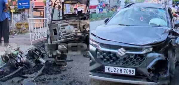 നിയന്ത്രണം വിട്ട കാറിടിച്ച് ഓട്ടോയ്ക്ക് തീപിടിച്ചു ; ഒരാൾ മരിച്ചു