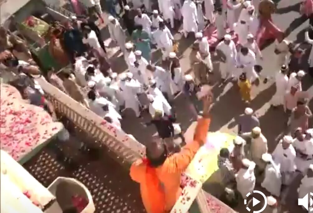 ഈദ് നമസ്ക്കാരത്തിനെത്തിയ മുസ്ലിംകൾക്ക് മേൽ പുഷ്പങ്ങൾ ചൊരിഞ്ഞ് ഹിന്ദുക്കൾ (വീഡിയോ)