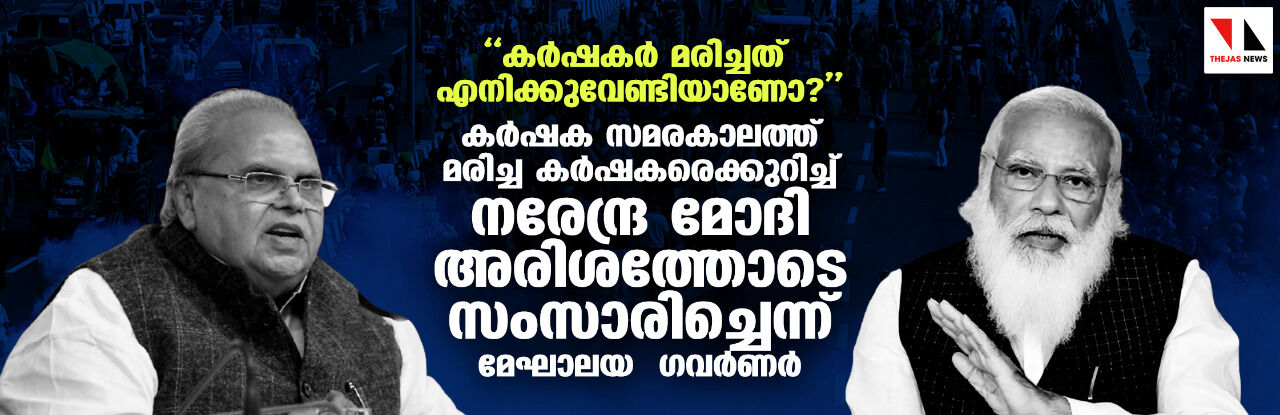 ''കര്ഷകര് മരിച്ചത് എനിക്കുവേണ്ടിയാണോ?'; കര്ഷക സമരകാലത്ത് മരിച്ച കര്ഷകരെക്കുറിച്ച് നരേന്ദ്ര മോദി അരിശത്തോടെ സംസാരിച്ചെന്ന് മേഘാലയ ഗവര്ണര്