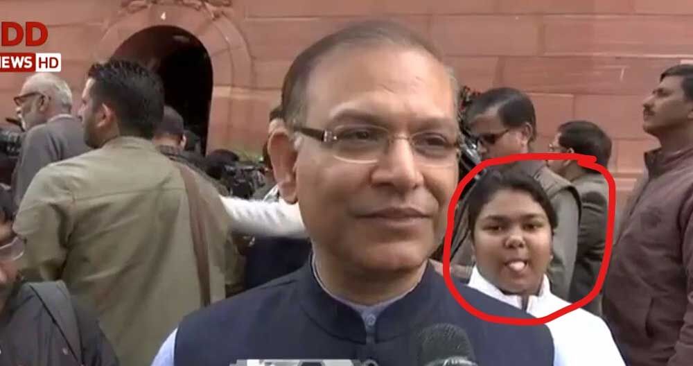 ബജറ്റ് പ്രഖ്യാപനങ്ങള്ക്കു ശേഷം പാര്ലമെന്റ് വിട്ടിറങ്ങിയ കേന്ദ്ര സഹമന്ത്രി ജയന്ത് സിന്ഹ ബജറ്റിനെ കുറിച്ച് മാധ്യമ പ്രവര്ത്തകരോട് സംസാരിക്കുന്നതിനിടെ പിറകില് നിലയുറപ്പിച്ച ഒരു പെണ്കുട്ടി മാധ്യമങ്ങളോട് ഗോഷ്ടി കാണിക്കുന്നതിന്റെ വീഡിയോയാണ് സോഷ്യല് മീഡിയയില് വൈറലായത്.