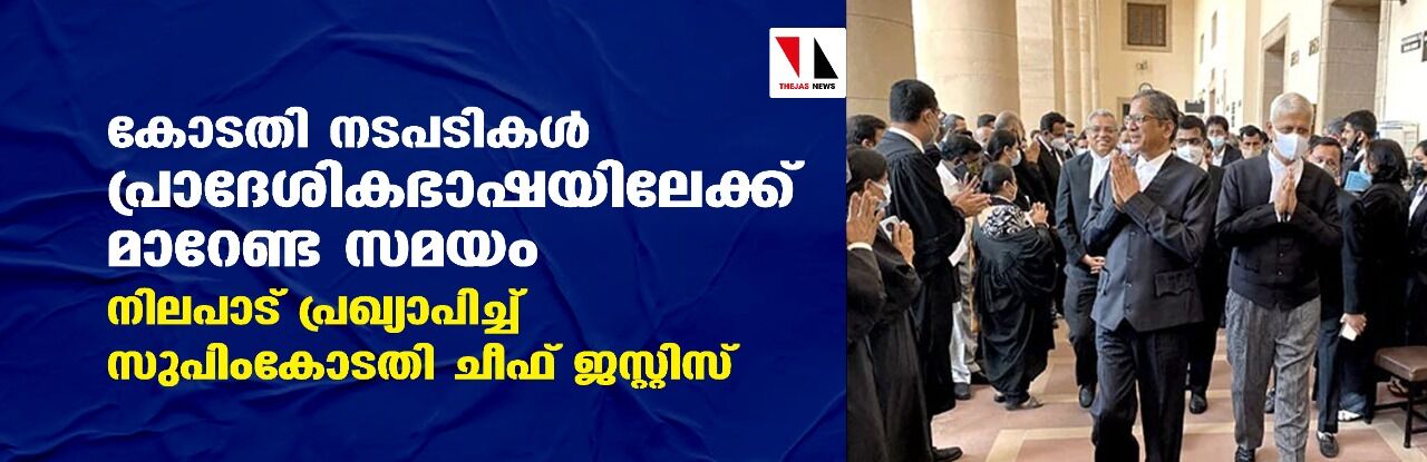 ''കോടതി നടപടികള് പ്രാദേശികഭാഷയിലേക്ക് മാറേണ്ട സമയം''; നിലപാട് പ്രഖ്യാപിച്ച് സുപിംകോടതി ചീഫ് ജസ്റ്റിസ്