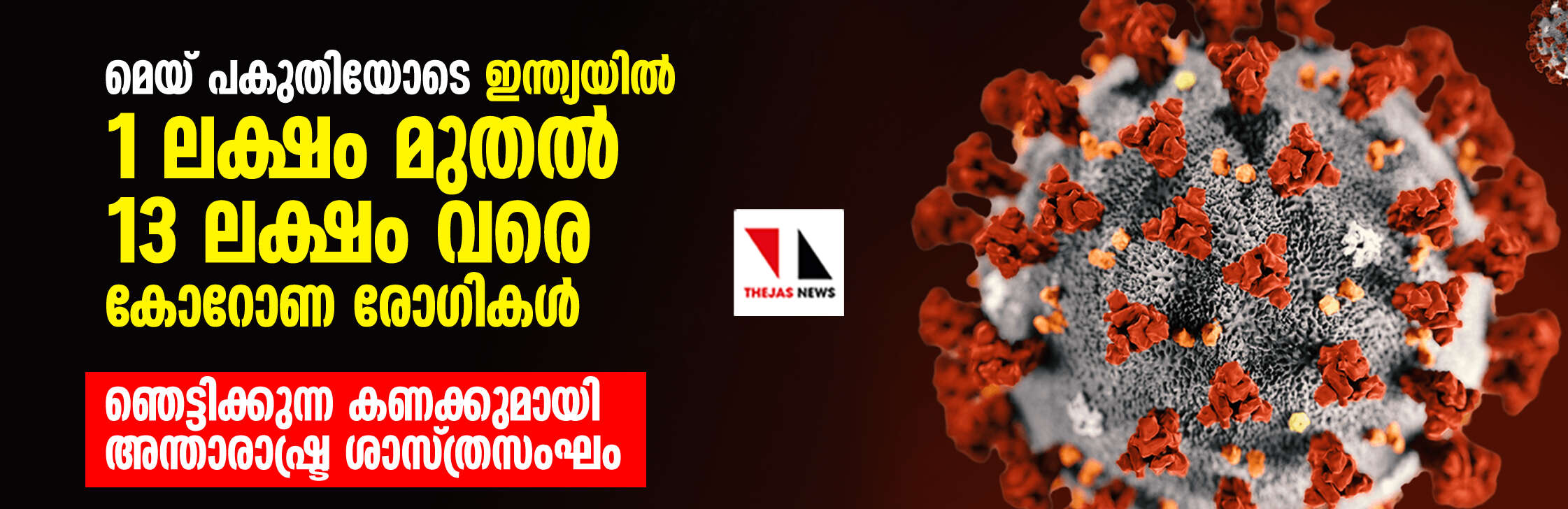 ന്യൂഡല്ഹി: ഇപ്പോഴത്തെ തോത് തുടരുകയാണെങ്കില് ഇന്ത്യയില് മെയ് പകുതിയോടെ ഒരു ലക്ഷത്തിനു 13ലക്ഷത്തിനും ഇടയില് കൊറോണ രോഗബാധിതരുണ്ടാവുമെന്ന് അന്താരാഷ്ട്രശാസ്ത്രസംഘം.