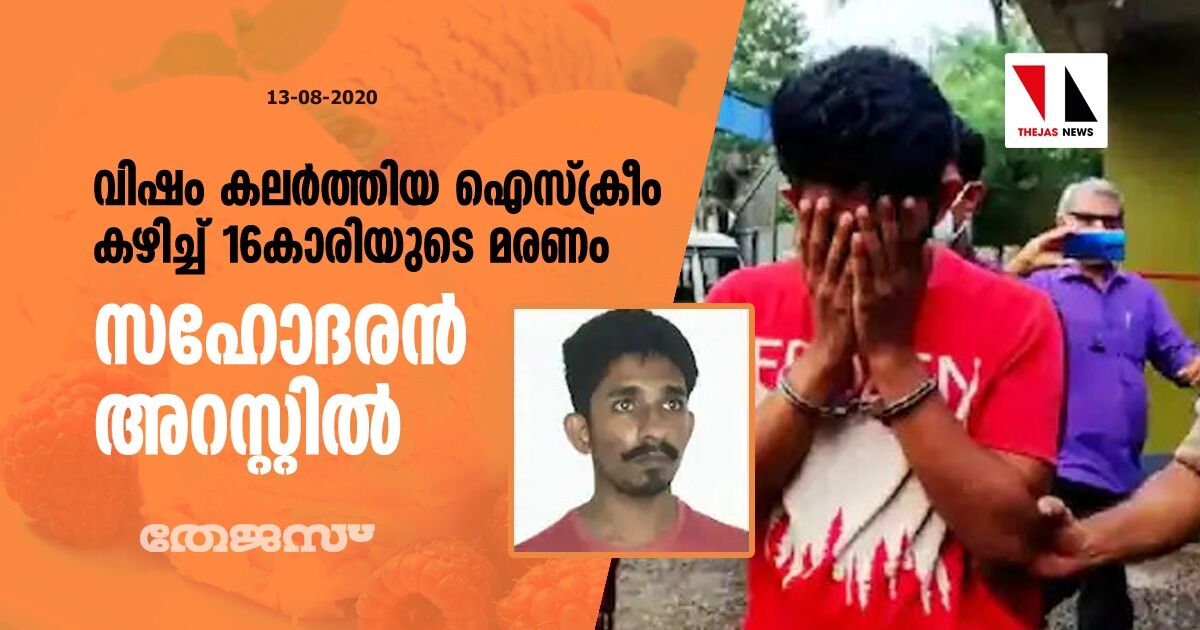 വിഷം കലര്ത്തിയ ഐസ്ക്രീം കഴിച്ച് 16കാരിയുടെ മരണം: സഹോദരന് അറസ്റ്റില്