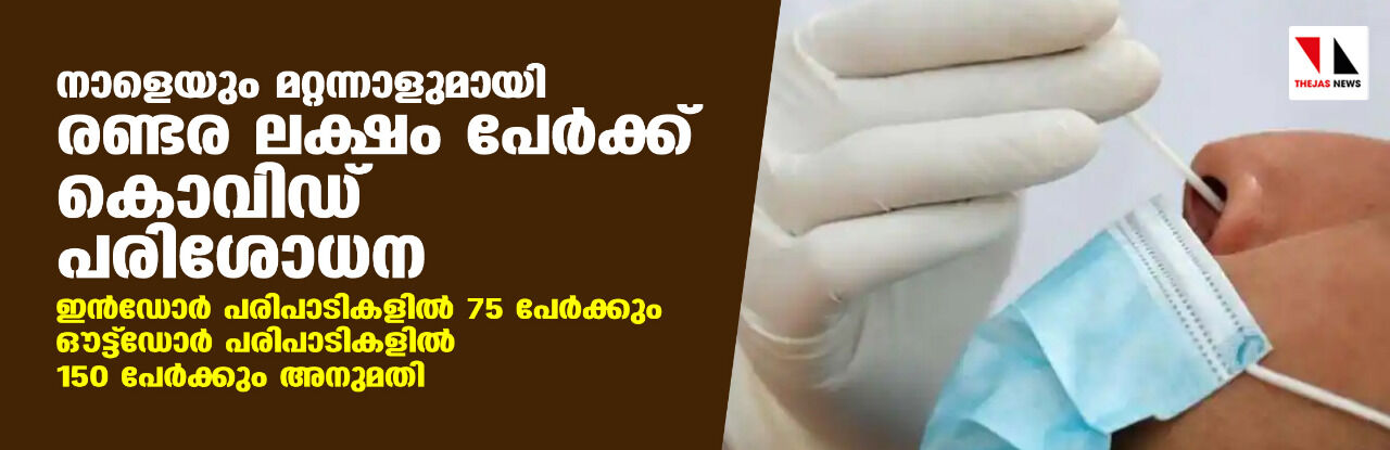 നാളെയും മറ്റന്നാളുമായി രണ്ടര ലക്ഷം പേര്ക്ക് കൊവിഡ് പരിശോധന; വ്യാപന പ്രദേശങ്ങളിലും മാര്ക്കറ്റുകളിലും മൊബൈല് ടെസ്റ്റിങ് യൂനിറ്റുകള്