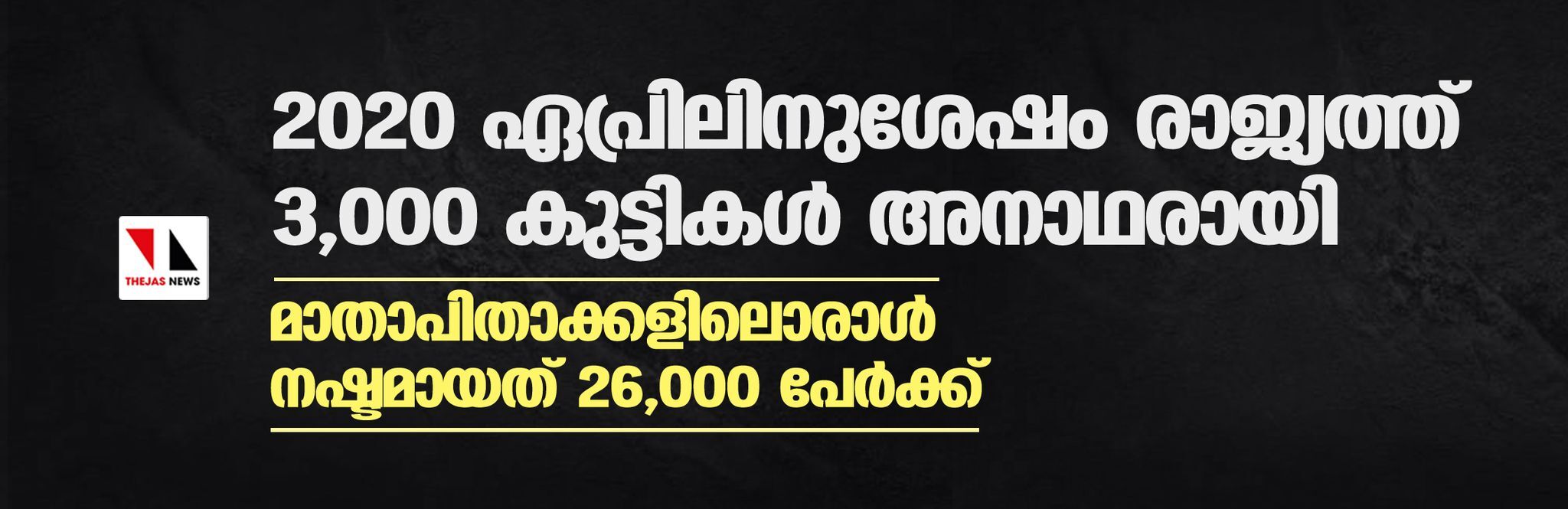 2020 ഏപ്രിലിനുശേഷം രാജ്യത്ത് 3,000 കുട്ടികള് അനാഥരായി; മാതാപിതാക്കളിലൊരാള് നഷ്ടമായത് 26,000 പേര്ക്ക്