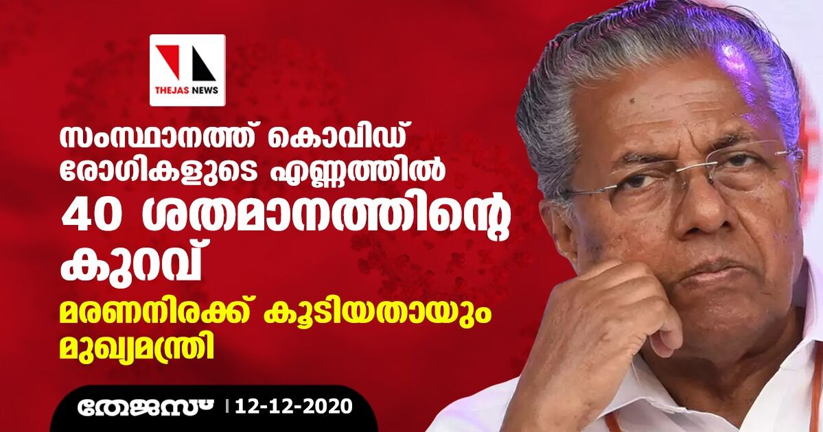 സംസ്ഥാനത്ത് കൊവിഡ് രോഗികളുടെ എണ്ണത്തില് 40 ശതമാനത്തിന്റെ കുറവ്; മരണനിരക്ക് കൂടിയതായും മുഖ്യമന്ത്രി