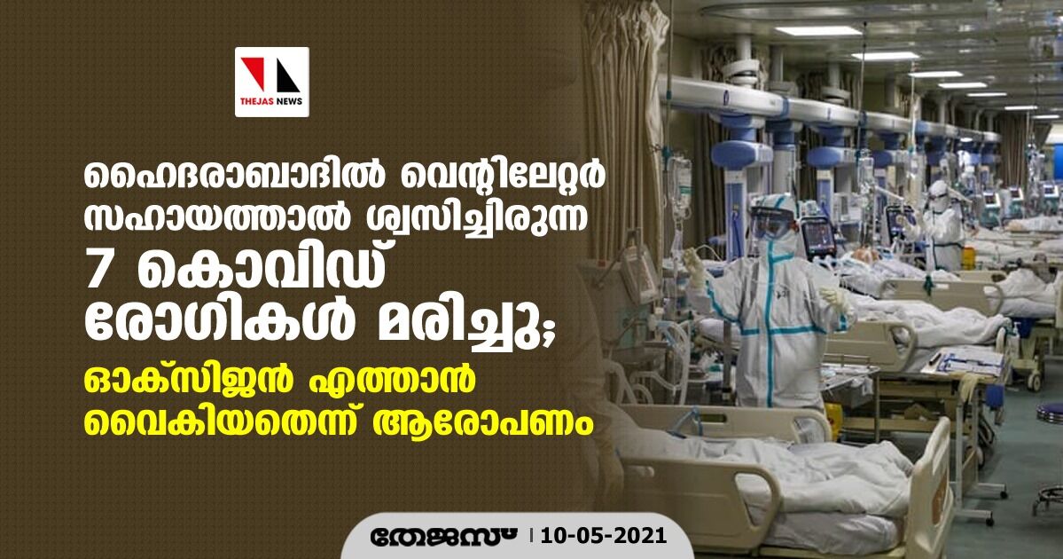 ഹൈദരാബാദില് വെന്റിലേറ്റര് സഹായത്താല് ശ്വസിച്ചിരുന്ന 7 കൊവിഡ് രോഗികള് മരിച്ചു; ഓക്സിജന് എത്താന് വൈകിയതെന്ന് ആരോപണം