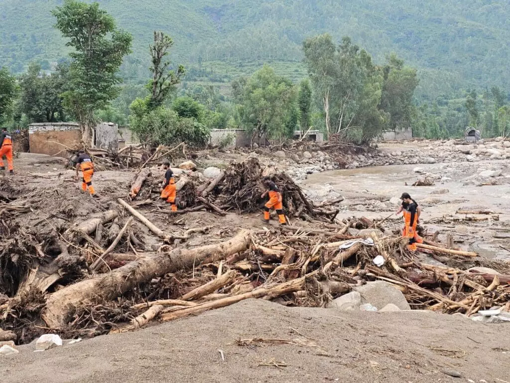 വടക്കുപടിഞ്ഞാറന് പ്രവിശ്യയായ ഖൈബര് പഖ്തൂണ്ഖ്വയിലാണ് ദുരന്തത്തിന്റെ ആഘാതം ഏറ്റവും കൂടുതല് അനുഭവപ്പെട്ടത്. ആഗസ്റ്റ് 15 നും 19 നും ഇടയില് പെയ്ത പേമാരിയില് 368 പേര് മരിക്കുകയും 182 പേര്ക്ക് പരിക്കേല്ക്കുകയും 1,300 ലധികം വീടുകള്ക്ക് കേടുപാടുകള് സംഭവിക്കുകയും ചെയ്തതിനെ തുടര്ന്ന് ബുണര്, ഷാംഗ്ല, മന്സെഹ്ര എന്നിവയുള്പ്പെടെ ഒമ്പതുജില്ലകളില് അധികൃതര് അടിയന്തരാവസ്ഥ പ്രഖ്യാപിച്ചു. ഏകദേശം 100 സ്കൂളുകളാണ് തകര്ന്നത്.