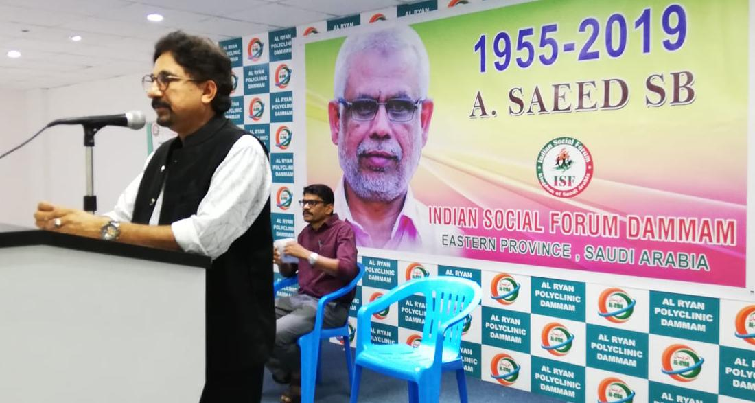 എ സഈദിന്റെ വിയോഗം നവസാമൂഹിക മുന്നേറ്റങ്ങള്ക്ക് കനത്ത നഷ്ടം: ഇന്ത്യന് സോഷ്യല് ഫോറം ദമ്മാം (വീഡിയോ)
