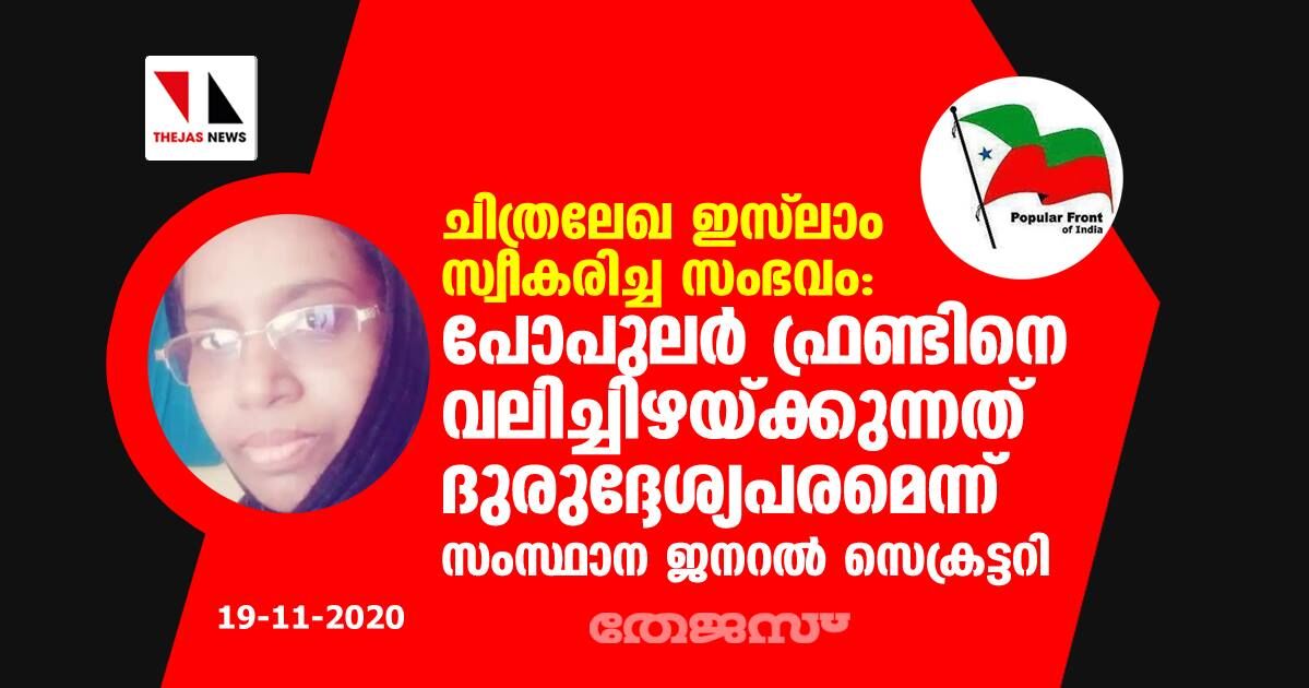 ചിത്രലേഖ ഇസ്ലാം സ്വീകരിച്ച സംഭവം: പോപുലര് ഫ്രണ്ടിനെ വലിച്ചിഴയ്ക്കുന്നത് ദുരുദ്ദേശ്യപരമെന്ന് സംസ്ഥാന ജനറല് സെക്രട്ടറി