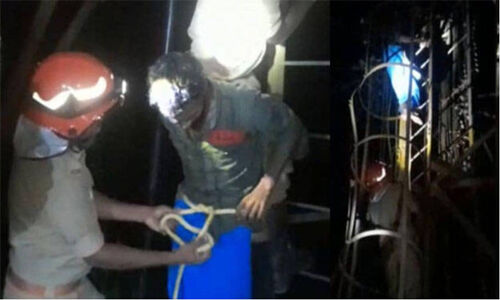 മുകളിലേക്ക് ടോര്ച്ചടിച്ച് നോക്കിയപ്പോള് കാലുകള് പുറത്തേക്ക് നീണ്ട നിലയില് ഒരു യുവാവ് കിടക്കുന്നത് കണ്ടു. മെയിന്റനന്സ് ജോലികള്ക്കായി കയറി നില്ക്കാന് കഴിയുന്ന സ്ഥലത്താണ് ഇയാള് കിടന്നുറങ്ങിയത്. ഫയര്ഫോഴ്സ് ഉദ്യോഗസ്ഥര് മുകളില് കയറി ഏറെ പണിപ്പെട്ടാണ് മദ്യലഹരിയിലായിരുന്ന യുവാവിനെ താഴെ ഇറക്കിയത്. കയറുകൊണ്ട് ഇടുപ്പില് കെട്ടിയാണ് ഫയര്ഫോഴ്സ് ഉദ്യോഗസ്ഥര് ഇയാളെ താഴെ എത്തിച്ചത്.
