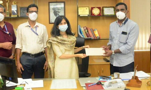 പാലക്കാട്: തിരഞ്ഞെടുപ്പ് ഡ്യൂട്ടിക്കിടയില് കെട്ടിടത്തില് നിന്നും വീണ് പരിക്കേറ്റ് ചികിത്സയില് കഴിയുന്ന തിരഞ്ഞെടുപ്പ് ഉദ്യോഗസ്ഥ എന്.വിദ്യാലക്ഷ്മിയുടെ ചികിത്സാ ചെലവിലേക്കായി തിരഞ്ഞെടുപ്പ് കമ്മീഷന് അനുവദിച്ച ഏഴര ലക്ഷം രൂപയുടെ സര്ക്കാര് ഉത്തരവും ഈ തുക പരിക്കേറ്റ വിദ്യാലക്ഷ്മിയുടെ ട്രഷറി അക്കൗണ്ടില് നിക്ഷേപിച്ചു കൊണ്ടുള്ള രേഖകളും ഭര്ത്താവ് രാജീവ് ജില്ലാ കലക്ടര് മൃണ്മയി ജോഷിയില് നിന്ന് കൈപ്പറ്റി. ജില്ലാ കലക്ടറുടെ ചേംബറില് വെച്ചാണ് തുക അനുവദിച്ചു കൊണ്ടുള്ള സര്ക്കാര് ഉത്തരവും നിക്ഷേപ രേഖകളുംകൈമാറിയത്.