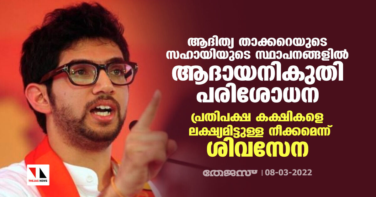 ആദിത്യ താക്കറെയുടെ സഹായിയുടെ സ്ഥാപനങ്ങളില് ആദായനികുതി പരിശോധന; പ്രതിപക്ഷ കക്ഷികളെ ലക്ഷ്യമിട്ടുള്ള നീക്കമെന്ന് ശിവസേന