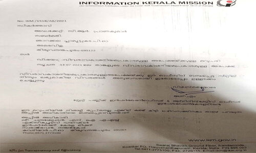 അമരവിള സ്വദേശി അഡ്വ. പ്രാണകുമാറിന്റെ അപേക്ഷയിലാണ് ഇന്ഫര്മേഷന് കേരള മിഷന് മറുപടി നല്കിയത്.