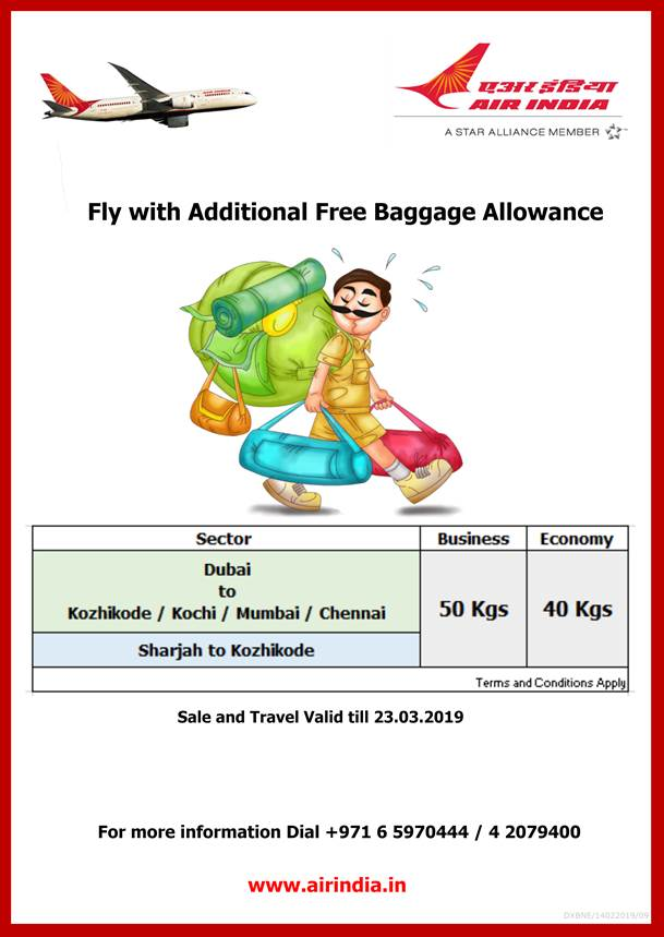യാത്രക്കാരില്ല; ലഗേജ് 10 കിലോ വര്ധിപ്പിച്ച് എയര് ഇന്ത്യ
