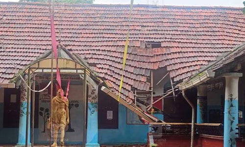 ആലപ്പുഴ: കാര്ത്തികപ്പള്ളി ഗവ. യുപി സ്കൂള് കെട്ടിടത്തിന്റെ മേല്ക്കൂര ഭാഗികമായി തകര്ന്നു. വരാന്തയുടെ മുകള് ഭാഗത്തെ കഴുക്കോലും ഓടുകളും ആണ് തകര്ന്നത്. വര്ഷങ്ങള് പഴക്കമുള്ള കെട്ടിടത്തിന് ഫിറ്റ്നസ് ഇല്ലാത്തതിനാല് ഇവിടെ ക്ലാസ് മുറികള് പ്രവര്ത്തിക്കുന്നില്ല. കിഫ്ബിയുടെ ഫണ്ട് ഉപയോഗിച്ച് രണ്ടു കോടി രൂപ ചെലവില് സ്കൂളില് പുതിയ കെട്ടിടം പണികഴിപ്പിച്ചെങ്കിലും വൈദ്യുതീകരണം നടക്കാത്തതിനാല് തുറന്നു കൊടുത്തിട്ടില്ല. ആയിരത്തോളം കുട്ടികള് പഠിക്കുന്ന വിദ്യാലയത്തിന് 200 വര്ഷത്തിലധികം പഴക്കമുണ്ട്.