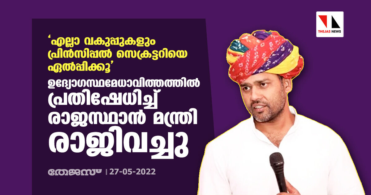 'എല്ലാ വകുപ്പുകളും പ്രിന്സിപ്പല് സെക്രട്ടറിയെ ഏല്പ്പിക്കൂ': ഉദ്യോഗസ്ഥമേധാവിത്തത്തില് പ്രതിഷേധിച്ച് രാജസ്ഥാന് മന്ത്രി രാജിവച്ചു