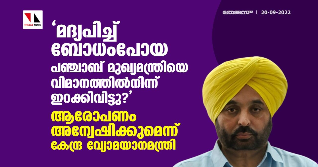 'മദ്യപിച്ച് ബോധംപോയ പഞ്ചാബ് മുഖ്യമന്ത്രിയെ വിമാനത്തില്നിന്ന് ഇറക്കിവിട്ടു?': ആരോപണം അന്വേഷിക്കുമെന്ന് കേന്ദ്ര വ്യോമയാനമന്ത്രി